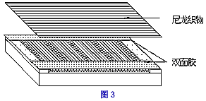 | 5£©ÔÚ²£Á§ÏËάÉÁ½²àÕ³ÌùË«Ãæ½º¡£ 6£©ÔÚ²£Á§ÏËάÉÉÏ·ÅÖÃÄáÁúÖ¯Îï¡£ |