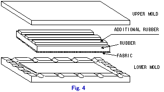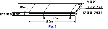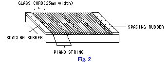 | 4) Put glass cord in parallel side by side on rubber sheet and put two piano strings(1mm phi,120mm length)on every 25mm spacing. And spacing rubber(thickness:about 1.5mm) shall be added on both side of specimen to adjust thickness. |