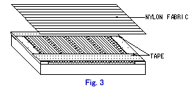 | 5) Adhere double side adhesive tape on both side of glass cord. 6) Put nylon fabric on glass cord. |